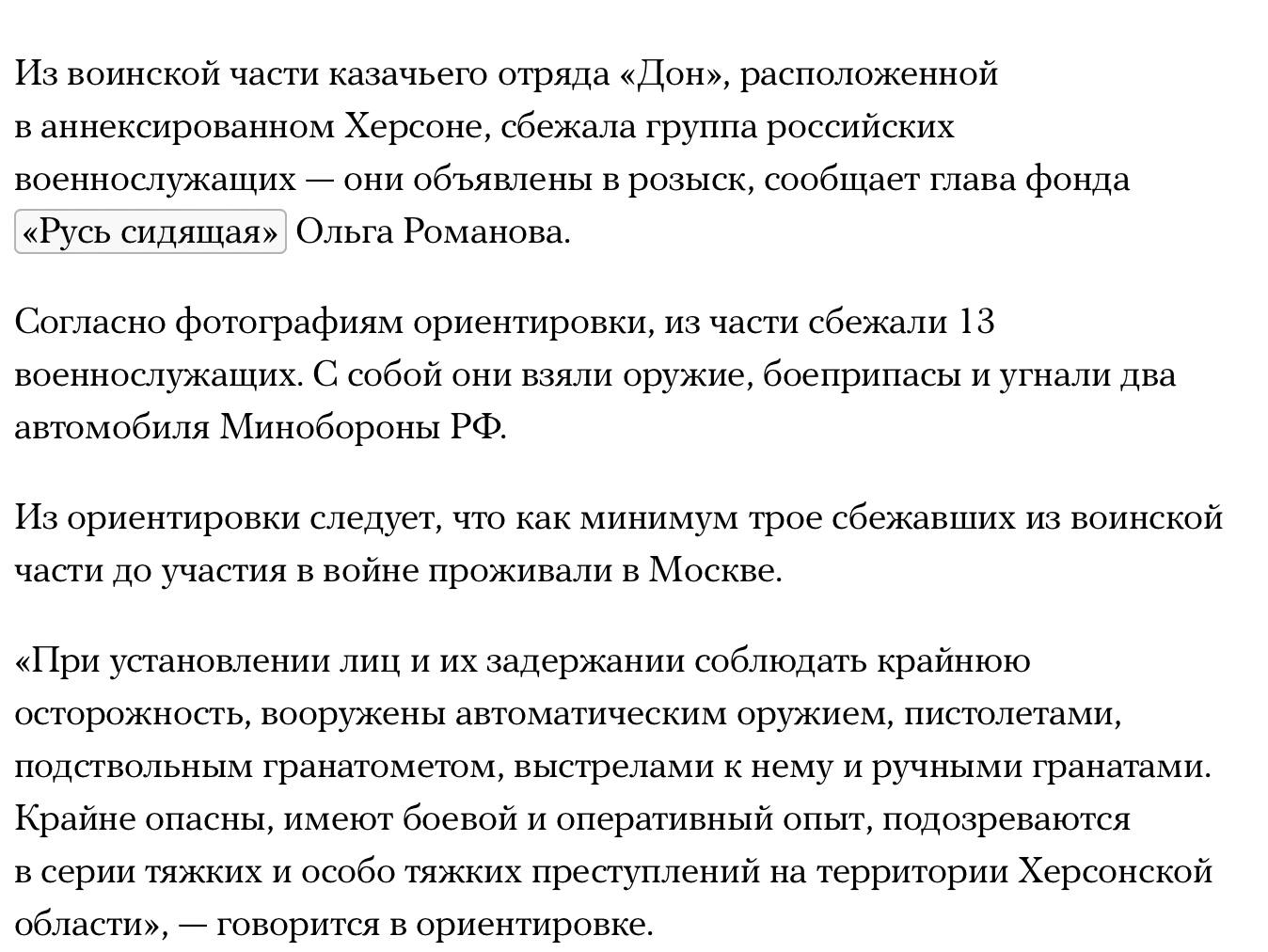 (c)Ровно сутки назад я написал о том, что россияне быстро разберутся, что с автоматами им никакое государство уже не требуется. И вот уже сегодня чертова дюжина особо опасных рецидивистов с автоматами, гранатометами и пулеметами отправилась в вояж по курортам Крыма, сбежав из воинской части в Херсонской области на технике Минобороны РФ. (Надеюсь, на бортах нарисованы и Z, и V - для кинематографичности) С почином, так сказать! Первые ласточки этой весны! Yakovina Ivan Слава Україні !